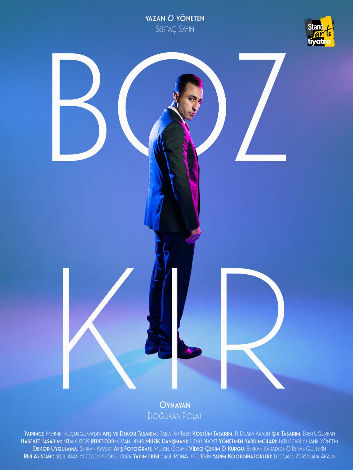 Doğukan Polat tek kişilik oyunuyla seyirci karşısına çıkmaya hazırlanıyor. Yapımcılığını Mehmet Küçükgünaydın’ın üstlendiği, Standarts Yapım imzalı “Bozkır” oyununun tanıtımı için renkli bir seçim kampanyası videosu çekildi ve özel afişler hazırlandı. Bireyin toplum baskısı ve iktidar arzusuyla dönüşümünü merkezine alan oyunda Doğukan Polat, “Payidar Muhtar” karakterini canlandıracak.