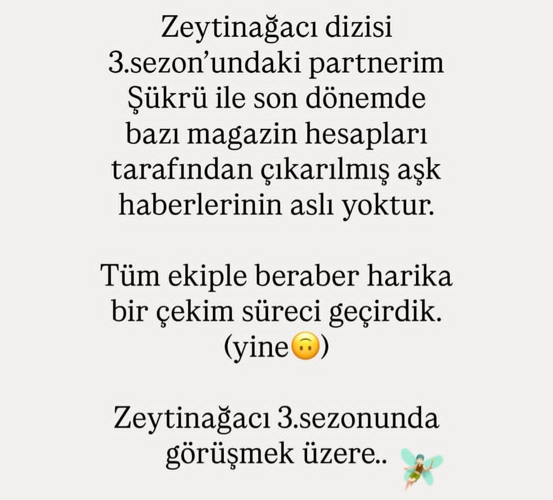 Tuba Büyüküstün açıklamasında iddiayı yalanladı ve “Zeytin Ağacı dizisi 3. sezonundaki partnerim Şükrü ile son dönemde bazi magazim hesapları tarafından çıkarılmış aşk haberlerinin aslı astarı yoktur. Tüm ekiple beraber harika bir çekim süreci geçirdik. Yine… Zeytin Ağacı 3. Sezonunda görüşmek üzere…” dedi.